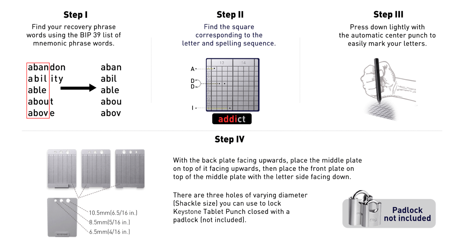 There are three holes of varying diameter(Shackle size) you can use to lock Keystone Tablet Punch closed with a padlock (not included)
